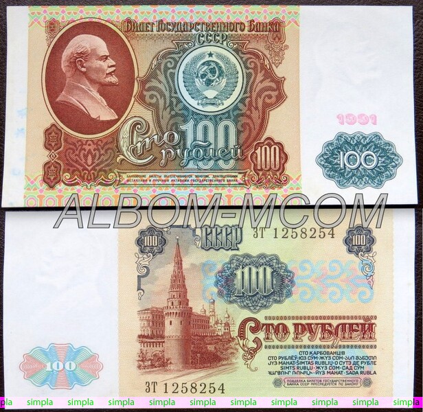 ГлавнаяБАНКНОТЫСССР и Россия → 100 рублей 1991 год. (Голубые пятна при печати) Пресс. UNC