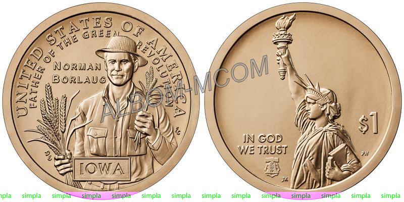 → 1 доллар США Американские Инновации 2026 год. Айова. Сельское хозяйство, Норман Борлоуг. UNC (30я)