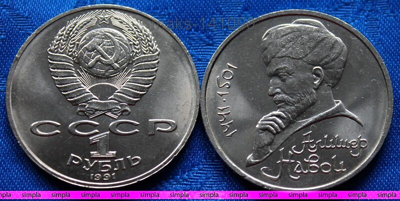 1 рубль 1991г 550 лет со дня рождения Алишера Навои
