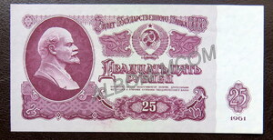 ГлавнаяБАНКНОТЫСССР и Россия → 25 рублей 1961 год. Пресс. UNC.