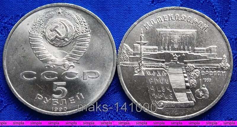 ГлавнаяМОНЕТЫЮбилейные монеты СССР → 5 рублей 1990 год Ереван. Матенадаран