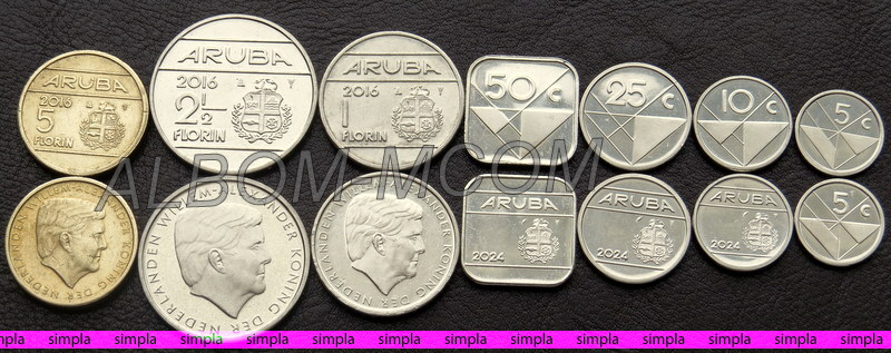 → Аруба набор 7 монет 2014-25 год. 5, 10, 25, 50 центов и 1, 2.5, 5 флоринов. XF-AUNC