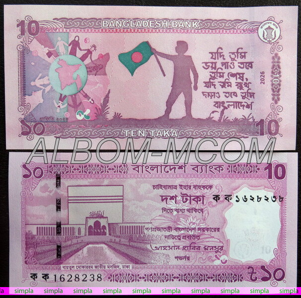 ГлавнаяБАНКНОТЫАзияБангладеш → Бангладеш 10 така 2026 год. Пресс. UNC