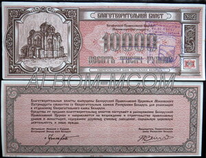 → Беларусь 10 000 рублей 1994 год. Благотворительный билет Белорусской православной церкви. XF-UNC