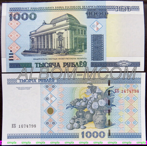 → Беларусь 1000 рублей 2000 год. Пресс. UNC