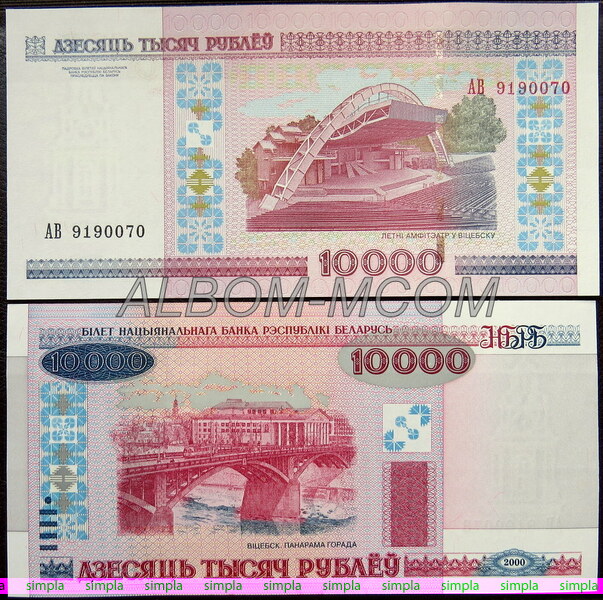 → Беларусь 10000 рублей 2000 (2011) год. Серия АВ. Пресс. UNC