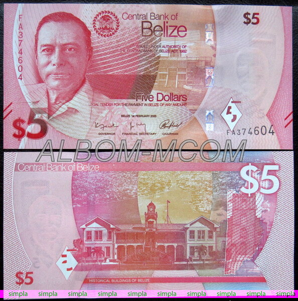 ГлавнаяБАНКНОТЫАмерикаБелиз → Белиз 5 долларов 2025 год. Пресс. UNC