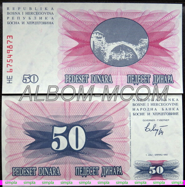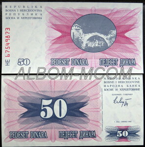 → Босния и Герцеговина 50 динар 1992 год. Пресс. UNC