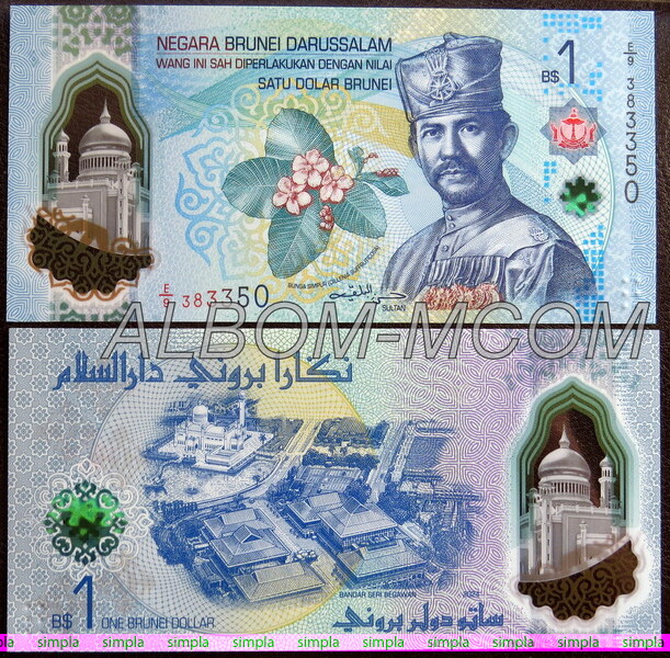 ГлавнаяБАНКНОТЫАзияБруней → Бруней 1 доллар 2024 (2026) год. Полимерная. Пресс. UNC