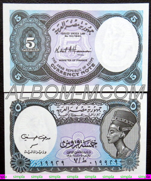 ГлавнаяБАНКНОТЫАфрикаЕгипет → Египет 5 пиастров 2002 год. UNC. Пресс