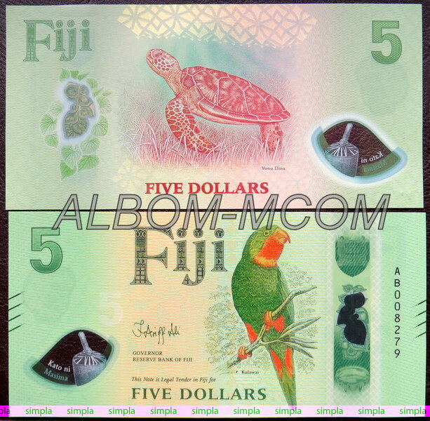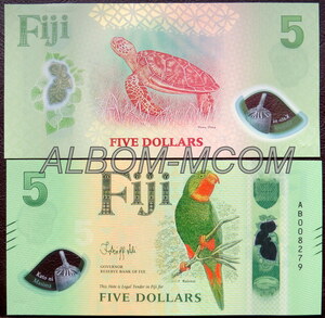 → Фиджи 5 долларов 2026 год. Кулавайский попугай. Пресс. UNC. Полимерная.