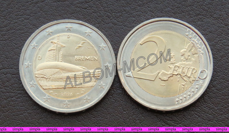 ГлавнаяНАБОРЫ и МОНЕТЫ РАЗНЫХ СТРАНМонеты ЕВРО → Германия 2 евро 2026 год. Бремен. UNC