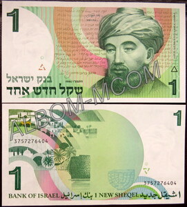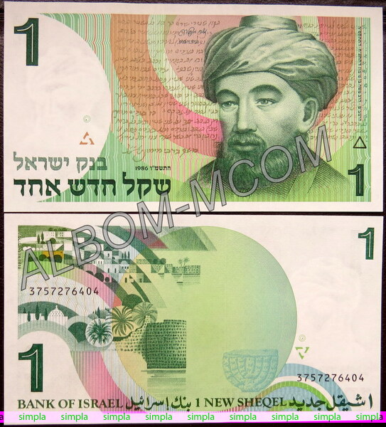 ГлавнаяБАНКНОТЫАзияИзраиль → Израиль 1 новый шекель 1986 год. Пресс. UNC
