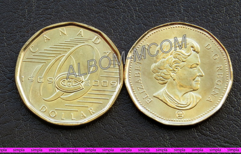 → Канада 1 доллар 2009 год. 100 лет хоккейному клубу Монреаль Канадиенс. UNC