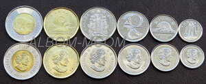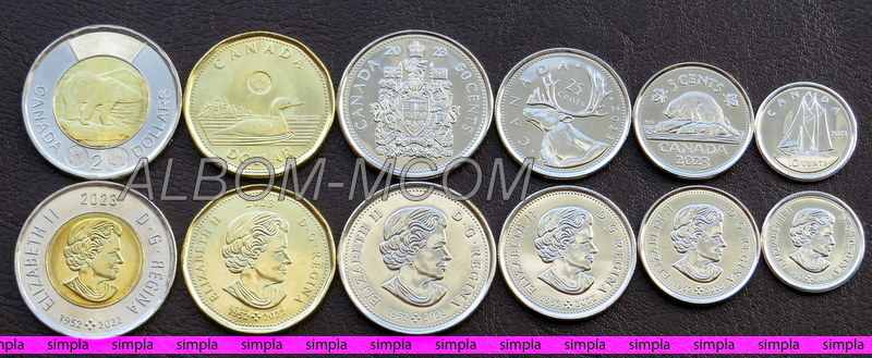 → Канада 2023 год. Набор 6 монет. 5, 10, 25, 50 центов, 1, 2 доллара. Королева Елизавета II. UNC