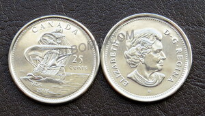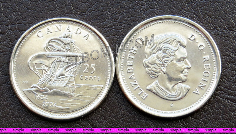 → Канада 25 центов 2004 год. 400 лет первому французскому поселению. Королева Елизавета II. UNC
