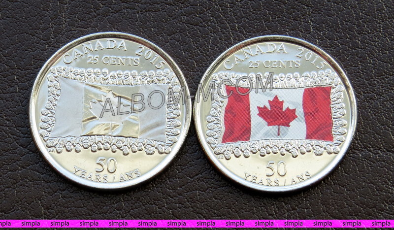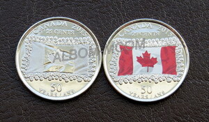 → Канада 25 центов 2015 год. 50 лет Канадскому флагу. 2 монеты (обычная + цветная) UNC