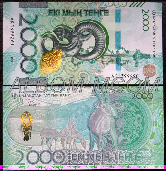 → Казахстан 2000 тенге 2024 (2025) год. Сайгак. Сакский Стиль. Пресс. UNC.
