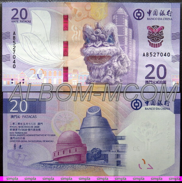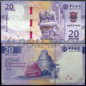 → Макао (Китай) 20 патак 2020 (2024) год. Banco da China. Пресс. UNC