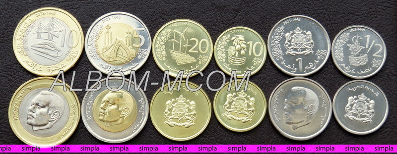 → Марокко набор 6 монет 2023 (2024) год. 10,5,1,1/2 дирхам и 20,10 сантимов. UNC (6 монет, новый дизайн)