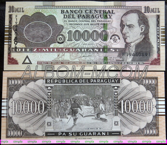 ГлавнаяБАНКНОТЫАмерикаПарагвай → Парагвай 10000 гуарани 2010 год. Пресс. UNC