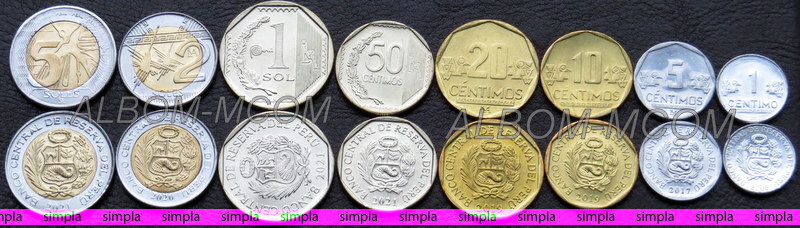 → Перу набор 8 монет 2006-2021 год. 1, 5, 10, 20, 50 сентимов и 1, 2, 5 новых соля. UNC