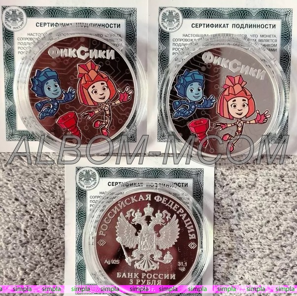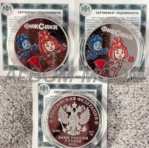 → Россия 3 рубля 2025 год. Мультипликация. Фиксики. Серебро. Сертификат