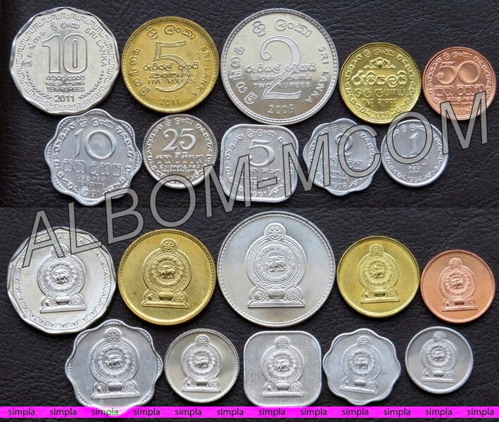 → Шри Ланка набор из 10 монет 1, 2, 5, 10, 25, 50 центов, 1, 2, 5, 10 рупий 1978 - 2011 год. UNC