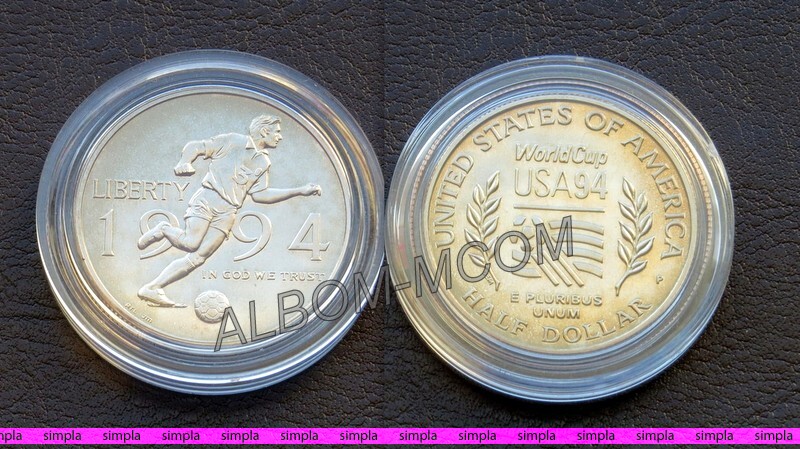→ США 1/2 доллара (50 центов) 1994 год. Чемпионат мира по футболу США. Редкий Двор S. Пруф в капсуле