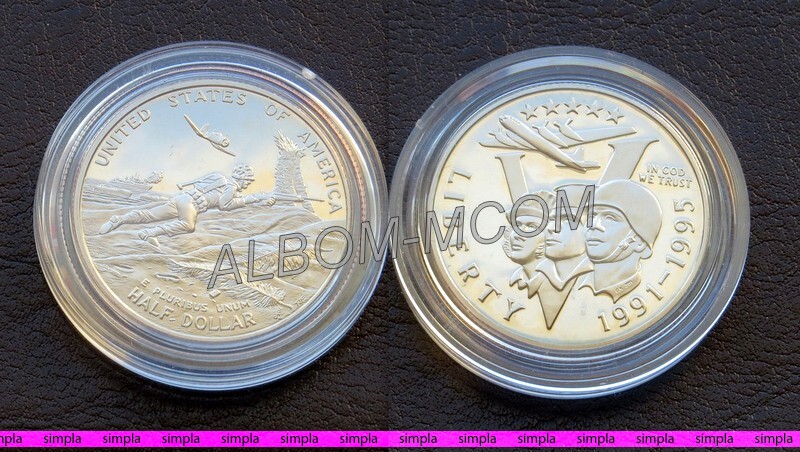 → США 1/2 доллара (50 центов) 1995 год. 50 лет Победы во Второй Мировой. Пруф в капсуле.
