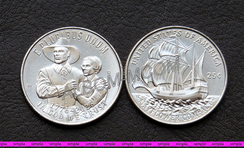 → США 25 центов 2026 год. Серия 250 лет война за независимость. 1я. Корабль Мэйфлауэр. UNC