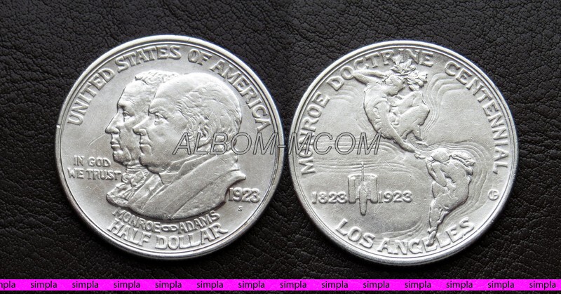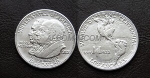 → США 50 центов 1923 год. 100 лет доктрине Монро. Редкое качество. Серебро. XF+