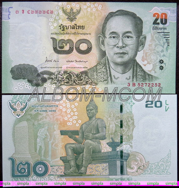 ГлавнаяБАНКНОТЫАзияТаиланд → Таиланд 20 бат 2013 год. ПРЕСС. UNC