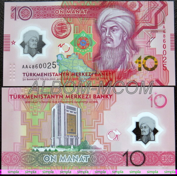 → Туркменистан 10 манат 2025 год. Год Мира и доверия. Серия АА. Полимерная. UNC