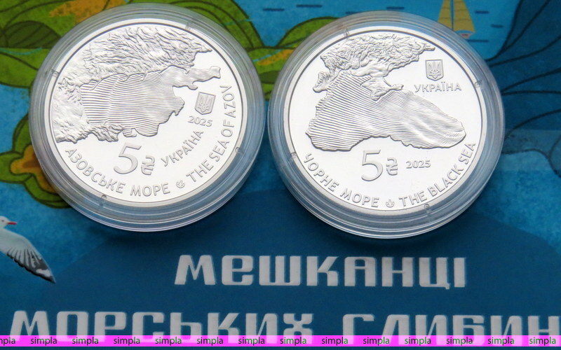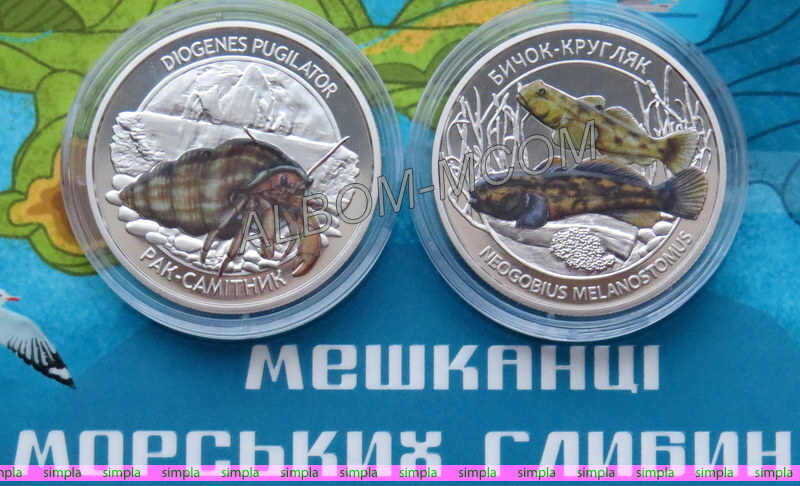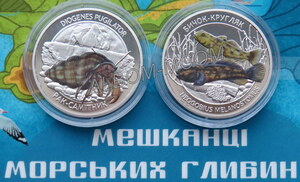 → Украина 5 гривен 2025 год. Серия - Жители морских глубин. Рак-отшельник и Бычок-кругляк. (2шт) UNC